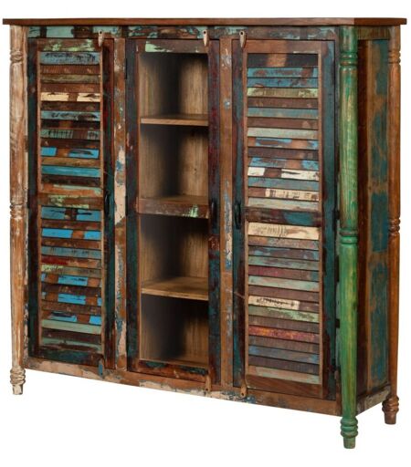 Massivmoebel24.de - Credenza in legno di legno riciclato 155x45x150 laccato multicolore FABlE 37 ...