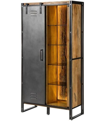 MASSIVMOEBEL24.DE Armadio in legno di Mango / Legno riciclato 105x45x195 Laccato naturale / ferro grigio blackburn lux 404
