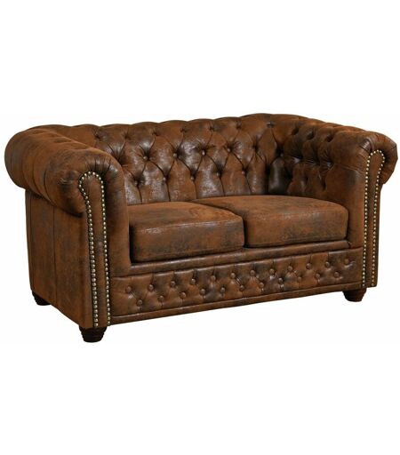 Massivmoebel24 Oxford Divano Chesterfield - stoffa / marrone - stile Coloniale 148x86x72