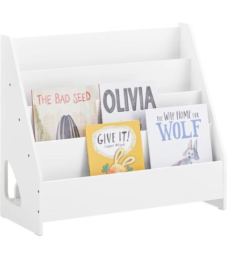 SOBUY Libreria Bambini, Scaffale Libri con 4 Ripiani e 1 Scomparto Aperto per Camera dei Bambini 70x30x60cm Bianco - KMB32-K-W