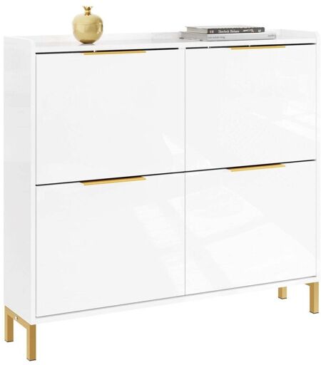 [Design Salvaspazio e Slim] Questa scarpiera salvaspazio slim con profondità di soli 19 cm si adatta perfettamente all’ingresso, al mobile ingresso o a corridoi stretti. Organizza le scarpe senza occupare troppo spazio e mantiene la casa ordinata [Eleganza Nordica] Mobile scarpiera bianca con finitura lucida e dettagli in oro, ideale come scarpiera ingresso o complemento d’arredo moderno. Lo stile raffinato si abbina a scarpiere moderne salvaspazio per un look di classe [Ampia Capacità con 4 Ante a Ribalta] Dotata di quattro scomparti, ogni anta a ribalta può contenere più paia di scarpe, dalle sneakers ai tacchi, mantenendo tutto ordinato. Questa scarpiera salvaspazio slim ingresso è perfetta come mobile scarpiera ingresso compatto [Materiali E1 Ecologici e Durevoli] Realizzata in MDF e PB E1 con struttura in ferro, garantisce stabilità e resistenza fino a 25 kg. Un’armadio portascope da interno con finitura resistente, sicuro e privo di odori, adatto a tutta la famiglia [Facile da ...