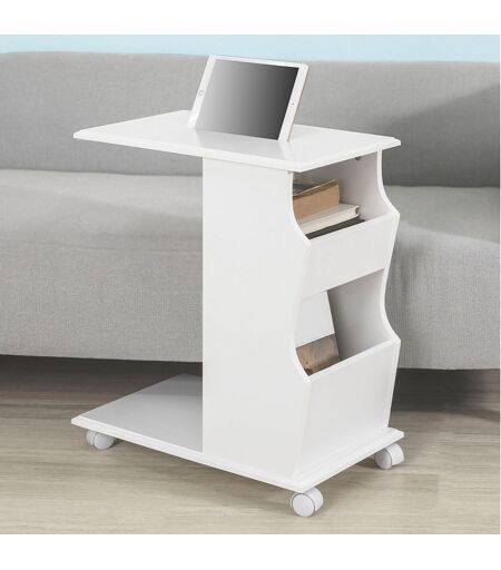 SOBUY Tavolino da divano moderno,con ruote e porta libri,riviste,cellulare e iPad, bianco,FBT67-W -