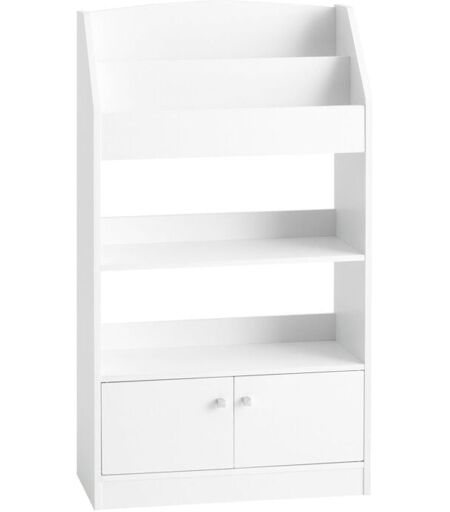 SOBUY - Libreria montessoriana per Bambini Portariviste Mobiletto cameretta Bambini, con 2 Ante, Bianco, KMB11-W