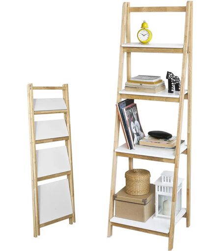 SoBuy FRG162-N Scaffale per scale Scaffale pieghevole Libreria con 4 piani in legno di gomma e MDF BHT: 42x140x34 cm