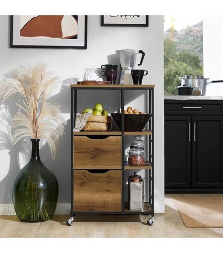 SOBUY Carrello da cucina con 2 cassetti e 3 ripiani, Carrello da servizio, Carrelli portaoggetti FKW111-PF -