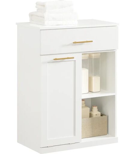 SoBuy BZR66-W armadio per biancheria con armadio da bagno ripiegabile, cassettiera, borsa per biancheria con 2 cassetti e 2 scomparti