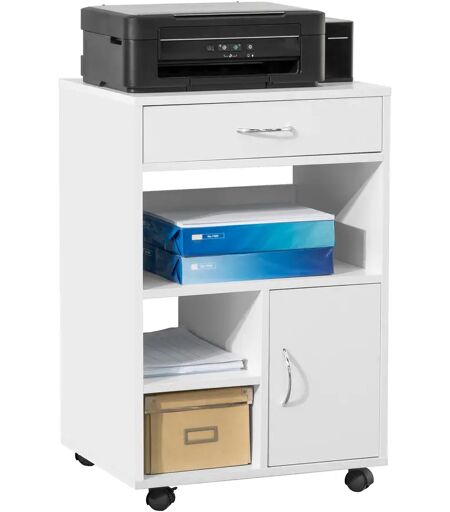 SoBuy FBT106-W tavolo stampante con cassetto e porta file armadio contenitore in rotolo con scomparti carrello da ufficio carrello laterale contenitore da ufficio ...