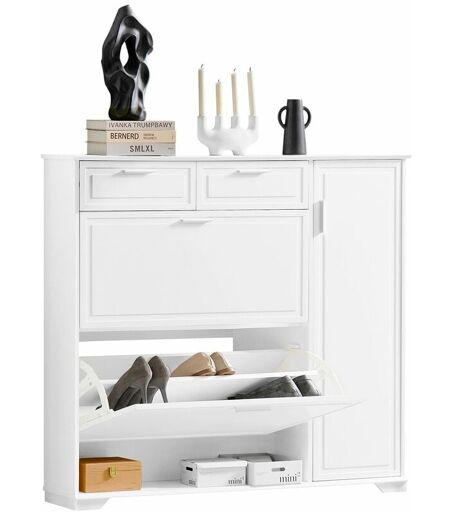SOBUY Scarpiera con 2 ribalte, 1 vano a giorno e 1 anta, Scarpiera stretta con cassetti, Bianco, 120x26x111 cm FSR104-W