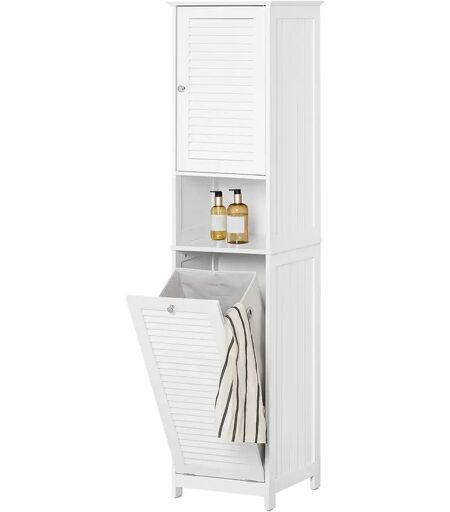 SoBuy BZR124 Armadio alto con borsa per la biancheria pieghevole, armadio da bagno, armadio da bagno, armadio da lavanderia stretto, mensola da bagno ...