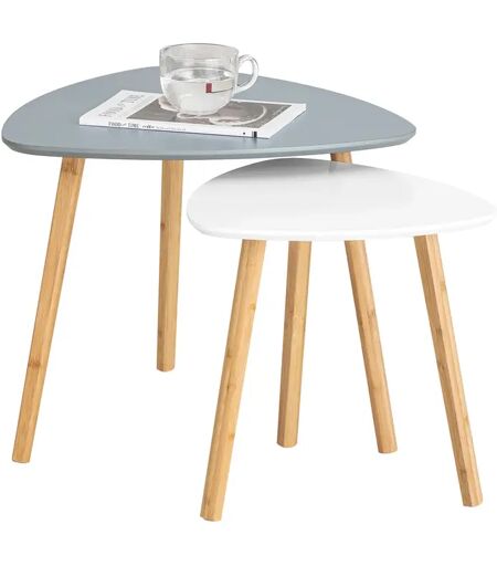 SoBuy FBT74 Set di 2 tavolini laterali con ripiani tavolino da caffè tavolino da salotto in bambù Grigio chiaro-Bianco ...