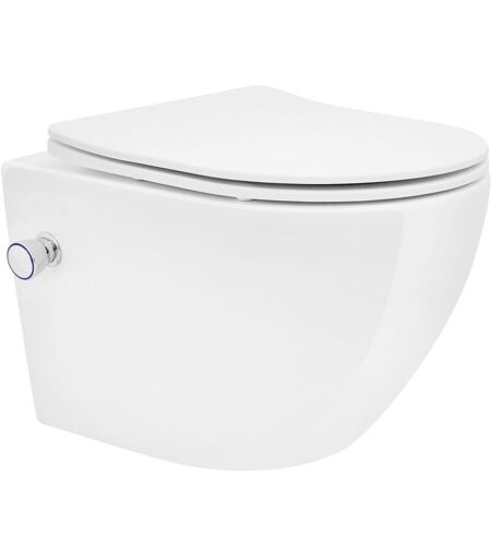 ECD GERMANY - wc Sospeso a Muro Bianco Design in Ceramica Vaso con Funzione Bidet Corto senza Bordo e Sedile Duroplast Rimovibile Copriwater Soft