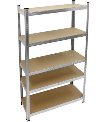 Contenuto: 1x ripiano senza bulloni composto da: 5x ripiano in MDF 20x telaio (lungo/corto) 5x tutore a croce 8x profilo a L 4x binario di collegamento 8x piede in plastica Dati tecnici: Materiale dello scaffale: pannello in fibra di legno MDF Materiale Telaio: Metallo zincato Dimensioni (AxLxP): ca. 200 x 100 x 50 cm Spessore del materiale Telaio: ca. 0,63 mm Numero di ripiani: 5 Spessore dello scaffale: ca. 5 mm 1 tutore a croce per ripiano Capacità di carico per ripiano: ca. 150 kg (peso uniformemente distribuito) Capacità di carico totale: ca. 750 kg (peso uniformemente distribuito) Peso: circa 15,5 kg Caratteristiche: Capacità di carico di 150 kg per ripiano con distribuzione uniforme del carico - 750 kg per ripiano Costruzione in metallo zincato / 5 ripiani in MDF con montaggio individuale Montaggio in 2 parti per area di lavoro/banco da lavoro Semplice sistema ad innesto senza viti Molto spazio di stoccaggio anche in piccole stanze Tappi di protezione in plastica a tutte le ...