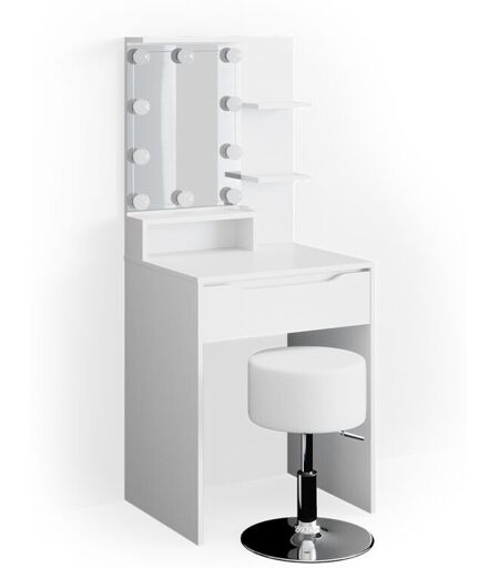 Vicco Tavolo da toeletta Ruben, Bianco, 60 cm con illuminazione led e sgabello