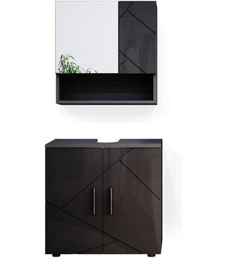 Vicco - Set mobili bagno Irma, Antracite lucido, 2 parti, mobile base 60 cm