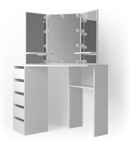 Vicco Tavolo da trucco ad angolo Arielle, Bianco, 110 cm con illuminazione a led