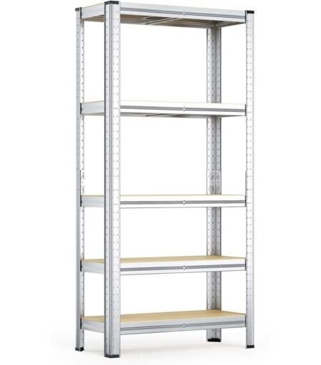 Scaffale per carichi pesanti con 5 ripiani 175 kg di portata per ripiano: 875 kg totale In acciaio con superficie zincata e MDF Pratico sistema a incastro Dimensioni esterne: 180 x 90 x 30 cm Lo scaffale per carichi pesanti di Wiltec aiuta a mettere rapidamente ordine in officina, cantina, ripostiglio e garage. Lo scaffale ha una dimensione totale di 180 x 90 x 30 cm (LxPxH) ed è dotato di cinque ripiani, realizzati in pannello di fibra MDF con una capacità di carico di 175 kg per ripiano, per una portata massima totale di 875 kg. Oltre ai robusti ripiani, anche il telaio fornisce anche la stabilità necessaria, grazie alla sua struttura in acciaio zincato. L’intuitivo sistema a incastro rende il montaggio molto facile, dato che non richiede l’uso di attrezzi. ...