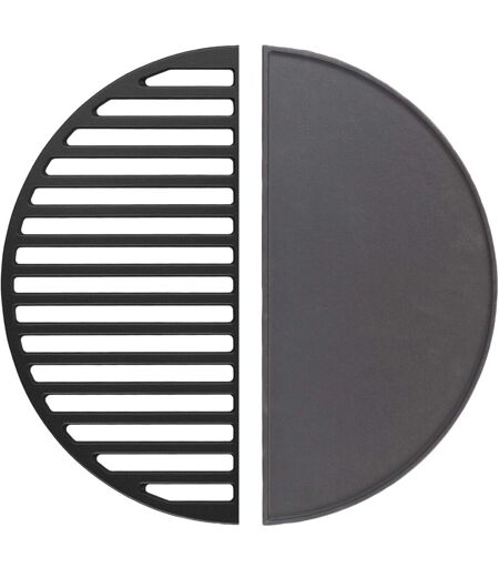 [Set con piastra e griglia] - Questo set include una piastra in ghisa rigata e una griglia in ghisa forata, entrambe a forma di mezza luna e con dimensioni di 55 x 26,5 cm ciascuna. Questa combinazione garantisce versatilità, consentendo di preparare diversi alimenti contemporaneamente e offrendo flessibilità durante la cottura. [Cottura uniforme e sana] - La piastra rigata crea le tipiche strisce della griglia, mentre la griglia forata consente la fuoriuscita di grassi e liquidi, rendendo i piatti più salutari. Entrambi gli accessori distribuiscono il calore in modo uniforme, assicurando una cottura perfetta e omogenea per carni, pesci e verdure. [Materiali di alta qualità] - Realizzate interamente in ghisa di alta qualità, la piastra e la griglia sono progettate per resistere alle alte temperature e all'usura frequente. La robustezza del materiale garantisce una lunga durata nel tempo, rendendo questo set indispensabile per barbecue e camini. [Facilità di utilizzo e pulizia] ...
