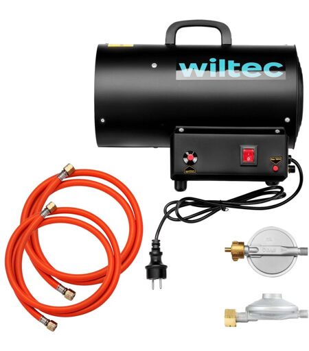 WILTEC Generatore di calore a gas gpl, 15 kW 30 w 320m³/ora, cannone aria calda con avviamento piezoelettrico, incluso riduttore di pressione del gas per