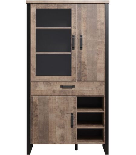 LES TENDANCES - Grande vetrina 3 ante, di cui 1 con vetro temperato, 3 nicchie e 1 cassetto L106 cm - emile