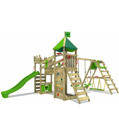 fatmoose Parco giochi in legno RiverRun Giochi da giardino con altalena SurfSwing e scivolo Casetta da gioco per l'arrampicata con sabbiera e scala di