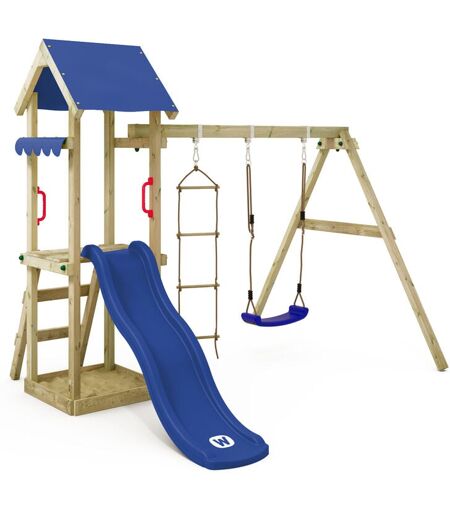 wickey Parco giochi in legno TinyCabin Giochi da giardino con altalena e scivolo Torre d'arrampicata da esterno con sabbiera e scala di risalita per bambini