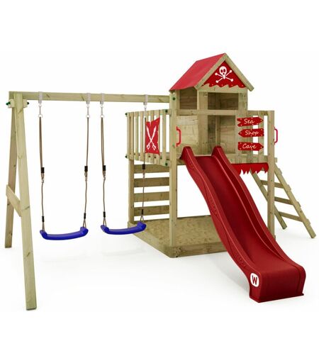 wickey Parco giochi in legno Smart Cave Giochi da giardino con altalena e scivolo Casetta da gioco per l'arrampicata con sabbiera e scala di risalita per