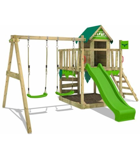 fatmoose Parco giochi in legno JazzyJungle Giochi da giardino con altalena e scivolo Casetta da gioco per l'arrampicata con sabbiera e scala di risalita per