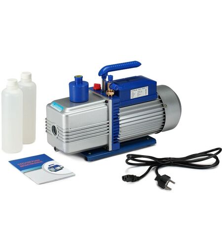 " Pompa per vuoto industriale a due stadi con corpo in alluminio Per l'uso professionale nella modellistica, negli impianti di refrigerazione e condizionamento, nella lavorazione delle materie plastiche, nell'odontotecnica e molto altro ancora..... Descrizione del prodotto / Dimensioni Pompa per vuoto a 2 stadi Potenza d'uscita: 750 Watt Potenza di aspirazione: 284 l/min. Capacità olio: 500ml Tensione: 230 Volt/50Hz Attacchi per tubi flessibili: 1⁄4" SAE & 3/8" SAE Vuoto: 3x10-1 Pa Alloggiamento in lega di alluminio Dimensioni 43 x 14,2 x 28cm Colore: argento / blu Peso: circa 13 kg " ...