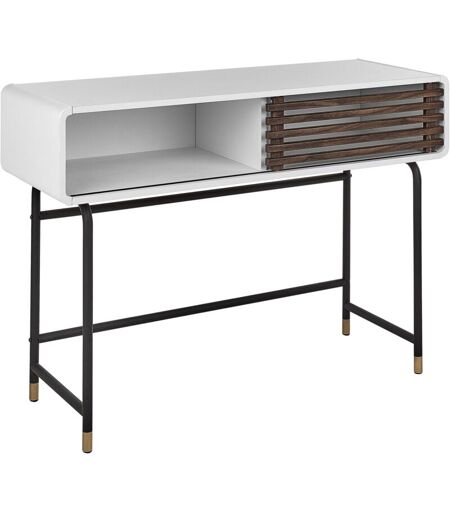 BELIANI Tavolo consolle bianco con sportello scorrevole a lamelle in legno scuro Rifle
