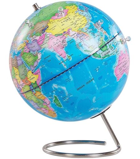 Mappamondo con base in acciaio inossidabile e magneti. Arreda la casa con uno stile unico e deciso. Il mappamondo è sempre una buona idea: ti fa volare con la fantasia alla ricerca di nuovi posti da scoprire. Questo è realizzato in materiale sintetico di alta qualità. Ben posizionato su una scrivania o una libreria in stile moderno. È il regalo ideale per gli amanti dei viaggi. Grazie ai magneti inclusi, possono contrassegnare i luoghi già visitati o pianificare destinazioni future. Dettagli: Tipo di prodotto: Mappamondo Stile: Classico Colore principale: Multicolore, Blu Tipo di materiale: Materiale sintetico Materiale principale: Materiale sintetico Materiale secondario: Acciaio inox Finitura: Opaca Dimensioni: Profondità: 25 cm Larghezza: 25 cm Altezza: 29 cm Peso: 1 kg L`offerta include: 1 x Globo, Set di pin magnetici Caratteristiche chiave: Rotazione a 360°, I pin magnetici permettono di evidenziare diversi luoghi sul globo, Arredo decorativo e funzionale, Finiture di pregio, ...