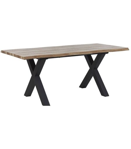 Tavolo da pranzo estendibile per 4-6 persone con piano irregolare. Semplice ma allo stesso tempo elegante, questo bellissimo tavolo da pranzo si abbina ad ogni interno in stile contemporaneo, moderno o di ispirazione industriale. Il piano del tavolo costruito in MDF impiallacciato rifinito in toni di legno scuro colpisce un aspetto unico grazie ai suoi bordi irregolari. Le gambe incrociate, realizzate in metallo verniciato a polvere, aggiungono un tocco moderno al tavolo. Adatto per un utilizzo quotidiano di 4 persone, grazie alle sue estensioni laterali puoi aggiungere spazio extra fino a 6 persone. Dettagli: Tipo di prodotto: Tavolo da pranzo Stile: Industriale Colore principale: Marrone, Nero Tipo di materiale: Derivati del legno Materiale principale: Fibra a media densità (MDF) Materiale secondario: Metallo Materiale delle gambe: Metallo Materiale del piano: Derivati del legno Forma: Rettangolare Finitura: Impiallacciato Numero di posti a sedere: 4 - 6 Persone Dimensioni: ...