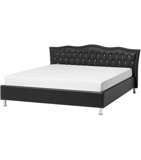 BELIANI - Letto Imbottito Pelle pu Nera a Doghe Stile Chesterfield 140 x 200 cm Metz