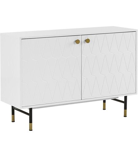Moderna credenza con 2 ante dai motivi geometrici. Questa credenza molto funzionale e pratica combacerà perfettamente con l'arredo del vostro soggiorno, camera da letto o corridoio, fornendo ulteriore spazio per i vostri oggetti. La struttura è in MDF di alta qualità ed è supportata dalle gambe in metalli con dettagli dorati. La forma minimalistica colorata di bianco, combinata con le ante dai disegni geometrici particolari ed elementi in nero porta eleganza in ogni interno. Dettagli: Tipo di prodotto: Credenza Stile: Retrò Colore principale: Bianco, Nero, Oro Tipo di materiale: Legno Materiale principale: Fibra a media densità (MDF) Materiale secondario: Ferro Materiale delle gambe: Metallo Cassetti: No Finitura: Rivestimento in PVC Numero di sportelli: 2 Ripiani: Sì Dimensioni: Profondità: 40 cm Larghezza: 120 cm Altezza: 82 cm Peso: 40 kg Portata massima del ripiano: 10 kg Portata massima del piano d`appoggio: 45 kg L`offerta include: 1 x Cassettiera Caratteristiche chiave: ...