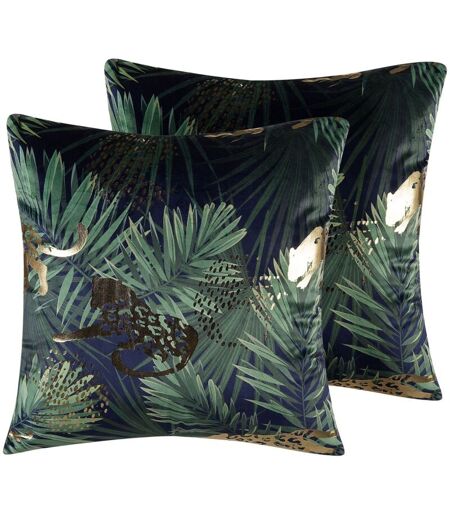 BELIANI - Set di 2 cuscini Decorativi in Velluto Verde Stampa a Foglie 45 x 45 cm Bellerose
