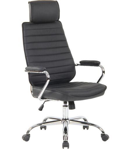 Sedia da ufficio Rako in vera pelle La sedia direzionale Rako è una sedia da ufficio con un rivestimento di altissima qualità e un look moderno. La fodera in vera pelle non solo è molto bella, ma è anche particolarmente robusta e di facile manutenzione. Una stabile struttura in metallo dall'aspetto cromato garantisce un appoggio sicuro. L'altezza del sedile è regolabile senza bloccaggio e garantisce una seduta ergonomica. Il meccanismo basculante integrato garantisce inoltre una maggiore libertà di movimento. La sedia girevole Rako poggia saldamente su cinque ruote scorrevoli. Che si tratti di pavimenti duri o in moquette, sarai sempre in grado di spostare la seduta facilmente e liberamente sul pavimento. Materiale del rivestimento: 100% vera pelle Misure ca.: Altezza totale: 117 - 128 cm Larghezza totale: 59 cm Profondità totale: 57 cm Capacità di carico: 120 kg Altezza seduta: 46 - 57 cm Superficie seduta (LxP): 50 x 45 cm Altezza schienale: 54 cm Altezza testiera: 8 cm Altezza ...