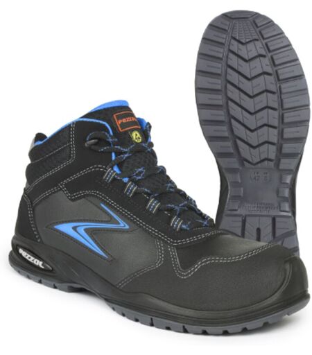 PEZZOL Portofino S3 scarpe da lavoro antinfortunistiche alte N.40 in pelle nera con inserti azzurri metal free made in Italy Nero + Azzurro 40 -