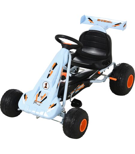 Homcom Go Kart Veicolo per Bambini a Pedali con Freni a Pedale kettcar Gokart con Sedile Regolabile Giocattolo per Bambini da 3 Anni Acciaio Azzurro Chiaro 97 x 66 x 59 cm