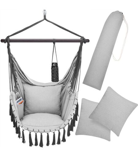 DETEX Amaca a Poltrona max. 150 kg Boho Style Cotone Naturale Intrecciato Macramè Portabevande 2 Cuscini XL Altalena da Giardino Light Grey (en)