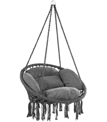 La sedia perfetta per il relax! Desideri rilassarti dopo una lunga giornata? Allora la poltrona sospesa DETEX® è la soluzione giusta per te. Le poltrone con seduta da 60 cm sono eleganti e comode. Lo schienale alto e la spessa imbottitura del cuscino si adattano alla forma del corpo. La poltrona sospesa ha una struttura robusta e zincata. Grazie ai due solidi anelli metallici, la sedia può essere regolata e fatta oscillare in tutte le direzioni. I due anelli in ferro zincato possono essere appesi separatamente o insieme. Con una capacità di carico fino a 150 kg, è possibile sedersi e rilassarsi. Il cesto della sedia sospesa è rivestito da un intreccio di cotone e poliestere. La sedia sospesa è resistente agli agenti atmosferici e facile da pulire. Con il suo colore elegante, la sofisticata tecnica di annodatura macramè e il design boho senza tempo, questa poltrona relax può essere utilizzata sia all'interno che all'esterno per rilassarsi ed è un'ottima aggiunta ai mobili da giardino ...