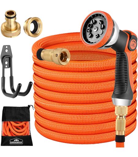 GARDEBRUK - Tubo di irrigazione da giardino con interno in triplo lattice adattatori in ottone per officina garage auto orange - 15m (de)