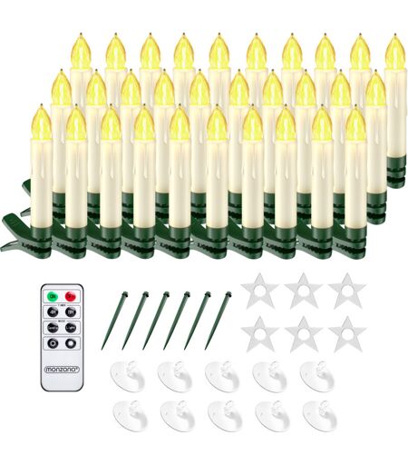 monzana 30x Candele LED di Natale senza Cavi Dimmerabile Effetto Tremolio Timer Telecomando Batterie Bianco Colorato bianco caldo