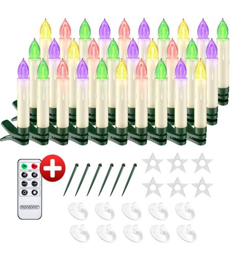 monzana 30x Candele led di Natale senza Cavi Dimmerabile Effetto Tremolio Timer Telecomando Batterie Bianco Colorato colorato -