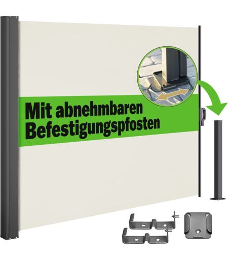 Parasole & paravento: per una privacy ottimale! La tenda da sole laterale Nosara del marchio di qualità Casaria® è la protezione ottimale da sguardi indiscreti . La cassetta della tenda in acciaio verniciato a polvere contiene un telo oscurante in poliestere resistente da 180g/m². Il paravento è installabile in 2 modi : tramite il fissaggio permanente del palo esterno al suolo o tramite il suo ancoraggio alla piastra di base inclusa. Basterà avvitare la base al pavimento e, una volta aperta la tenda, potrete agganciare il palo esterno all´apposita base. Il supporto a parete regolabile rende la tenda versatile su vari di tipi di balconi e terrazze. Vantaggi del prodotto : Oscurante & idrorepellente Retrattile & estensibile senza pieghe Larghezza max.: 3 metri Montaggio a parete regolabile e flessibile Fissaggio a terra o con pattino di scorrimento Palo con pattino per uno smontaggio più rapido Protezione solare discreta, elegante ed efficace Anti-UV & resistente alle intemperie Dati ...