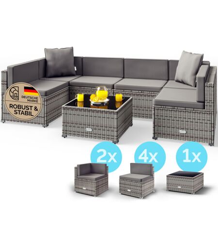 Casaria Set Lounge xl in Polyrattan Divanetto da Esterno con Tavolo e Cuscini Mobili da Giardino Salottino Grigio grey/anthracite (en) -