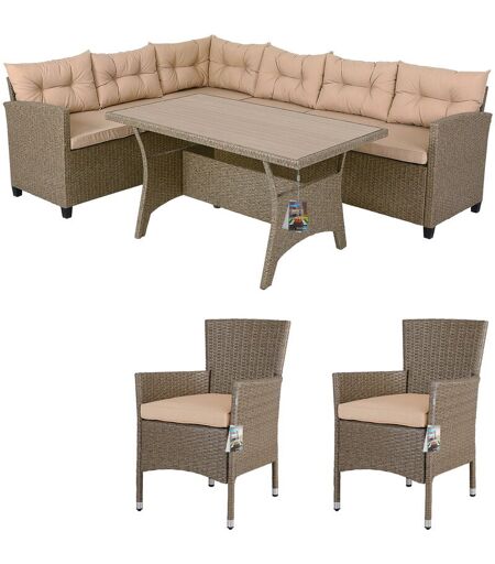 Casaria Polyrattan Lounge Tavolo da pranzo Panca D'angolo 2 Sedie da Giardino Set di Mobili Outdoor Esterno Crema -