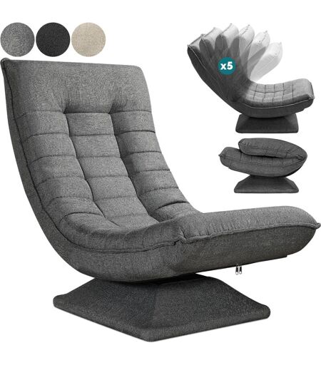 Casaria Sedia da Pavimento Schienale Regolabile Ruotabile 360° Pieghevole Portata 150 kg 58x57x84 cm Poltrona Imbottita Salotto Grey (en) -