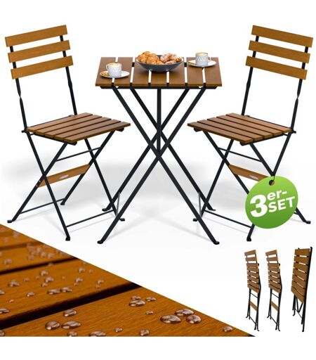 Casaria ® Set da bistrot 3 pezzi in legno d'acacia certificato FSC® pieghevole in metallo 55x55x70cm tavolo 2 sedie mobili da giardino esterno