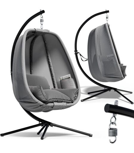 Sedia sospesa da esterno con telaio 2 tasche laterali cuscino xxl poltrona a dondolo interno 150 kg di carico nera stabile resistente Grigio - Casaria ...