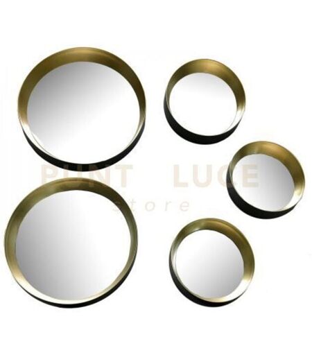 LIA SET 5 SPECCHI DIAMETRI ASSORTITI CON CORNICE PLASTICA NERA E ORO ...