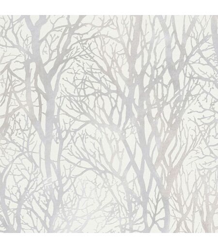 PROFHOME - Carta da parati natura 300941 Carta da parati tnt strutturata con elementi di natura opaca bianco argento 5,33 m2